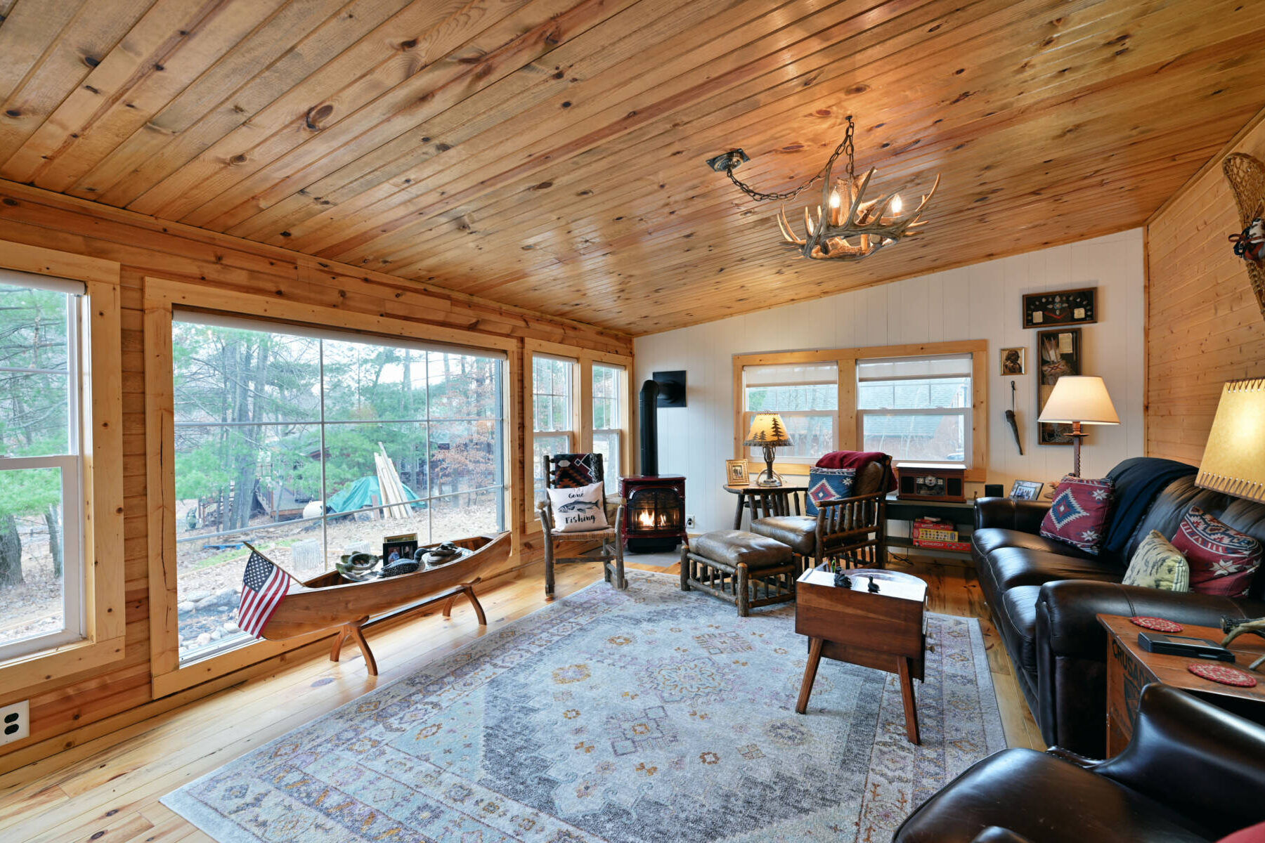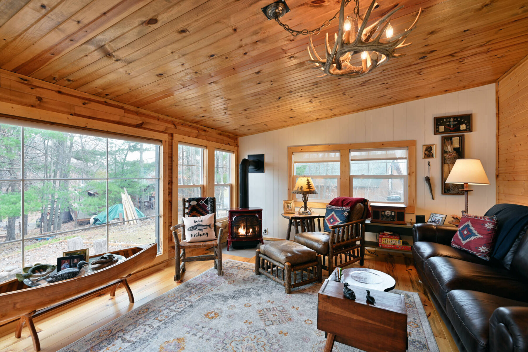 Charming, fully remodeled 3-season cabin on a beautifully landscaped lot with a large yard, perfectly situated on Big Bass Lake. This low-elevation property offers a nice sandy hard bottom on a crystal-clear full recreation lake that has fantastic fishing, swimming, and year-round beauty. Enjoy the spacious outdoor patio with a firepit for evening gatherings, plus brand-new decks to take in the peaceful setting. The seller has thoughtfully updated the entire cabin inside and out, including new flooring, plumbing, kitchen and bathroom upgrades, a free standing gas-log fireplace for chilly nights, and much more. You’ll love the panoramic lake views from the spacious living room. With these modern updates, this cabin is move-in ready—your perfect lakeside retreat to relax and enjoy lake life at its best.