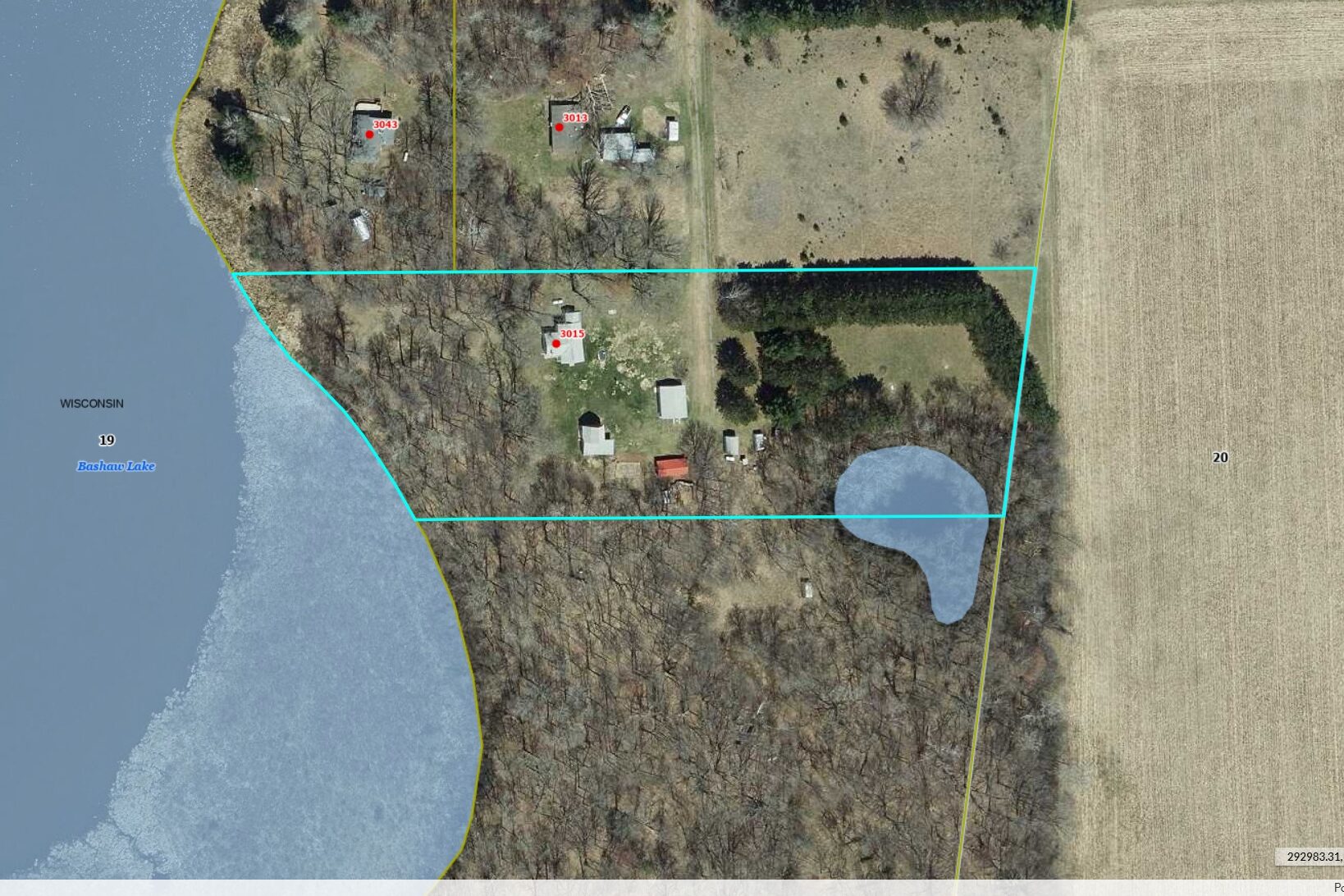 From Spooner, west on Hwy 70. Left on County Hwy H, Right on Bashaw Lake Road, to shared driveway on left. |
