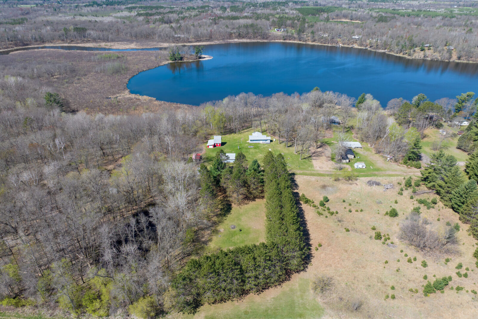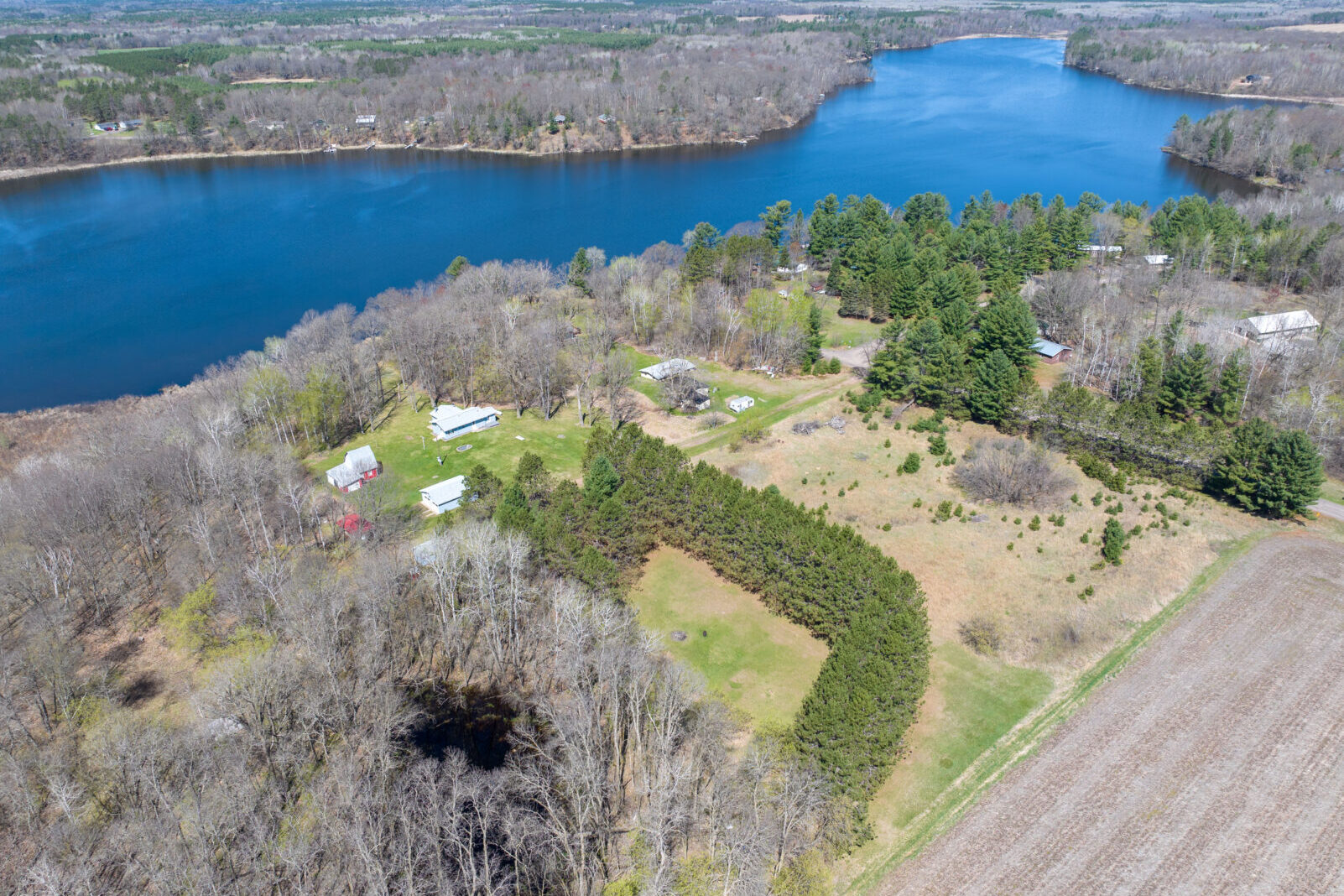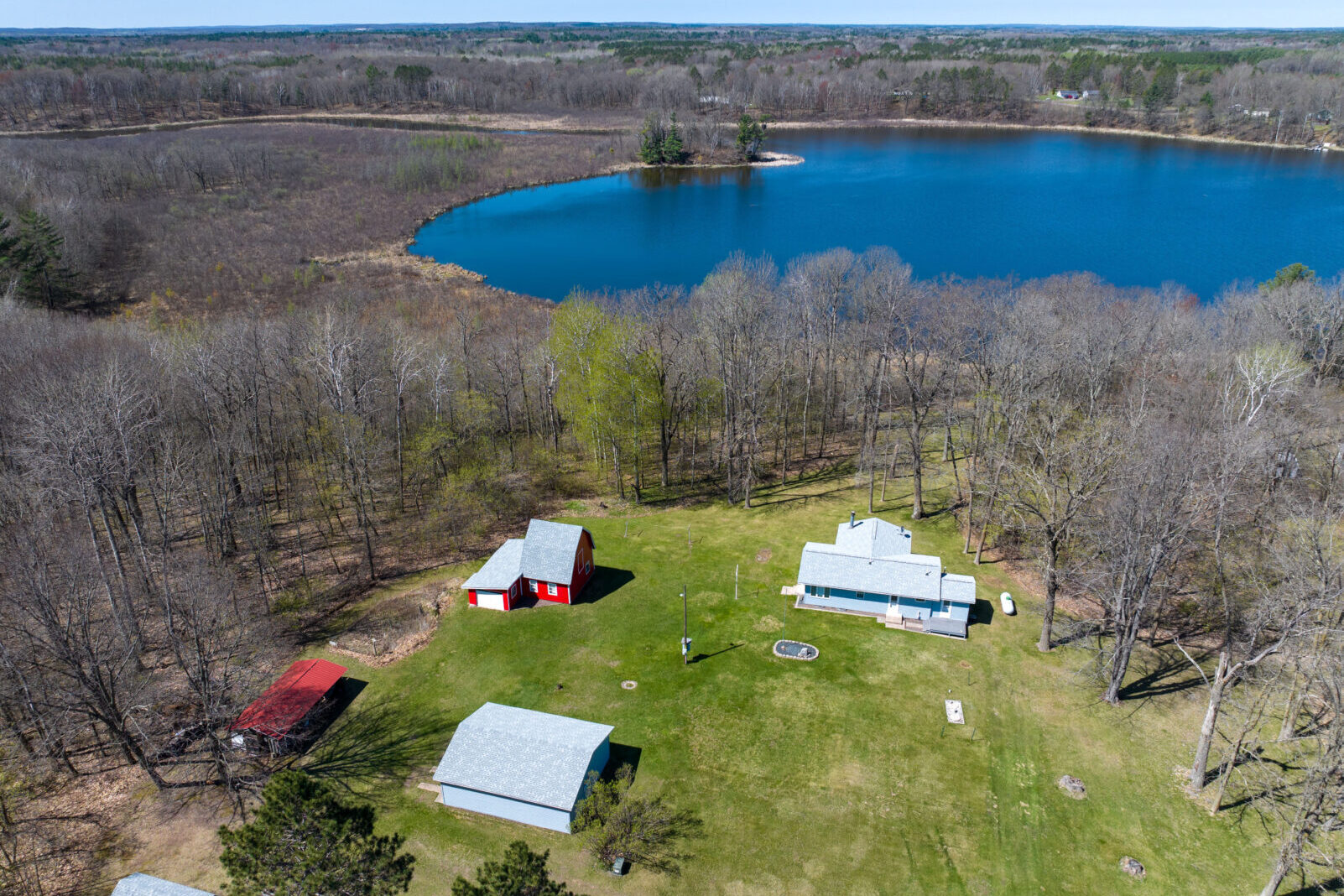 | Escape to your own private haven with this charming 2-bedroom lake home, perfectly nestled at the end of a quiet dead-end road. Surrounded by towering pines on a 3.9-acre lot, this open-concept gem offers peace, privacy, and stunning lake views. Step inside to a bright and airy main floor layout, featuring a spacious living area anchored by a cozy wood-burning, free-standing fireplace—perfect for chilly evenings. The brand-new siding and roof provide worry-free living and a fresh exterior look. Enjoy the outdoors with a large yard ideal for entertaining, relaxing, or playing. The property also includes a 2-car garage, a handy storage shed, and even a barn for extra storage or hobby space. Whether you’re looking for a year-round home or a seasonal escape, this lakefront property offers the ideal blend of comfort, seclusion, and natural beauty.