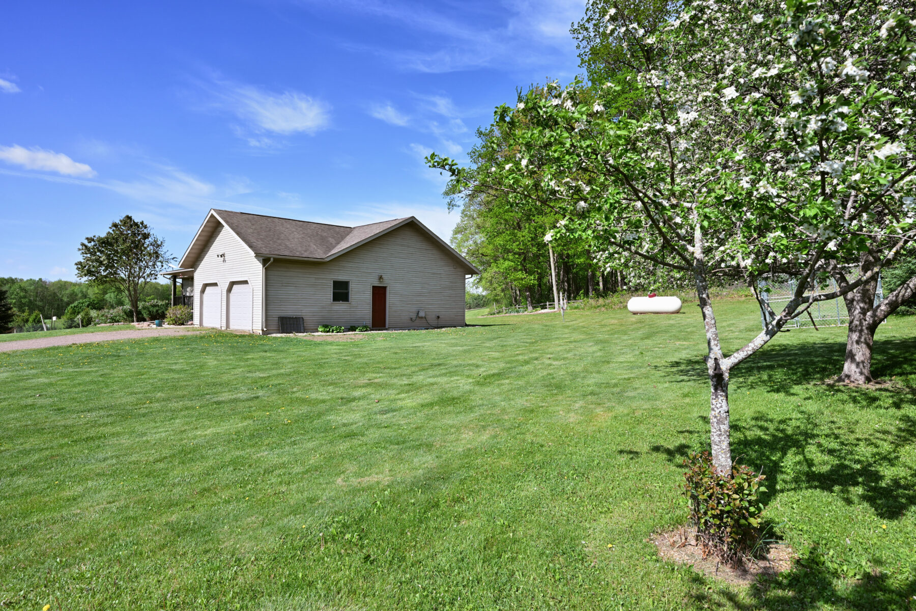 Escape to country living at its finest with this 4-bed, 3-bath dream home on nearly 9.5 acres with a mix of open space and woods. Nestled on a quiet road, this bright, well-laid-out home features a spacious master suite with walk-in closet and a large family room downstairs—ideal for family living. The expansive yard includes a fenced garden, chicken coop/run, and a 40’x30’ pole building for storage or hobbies. Enjoy established fruit trees—apple, pear, plum, cherry—plus raspberry patch, rhubarb, honey berries, and a dedicated pollinator garden. Find your privacy and tranquility with this property that offers the best country living yet convenience to all the modern amenities.